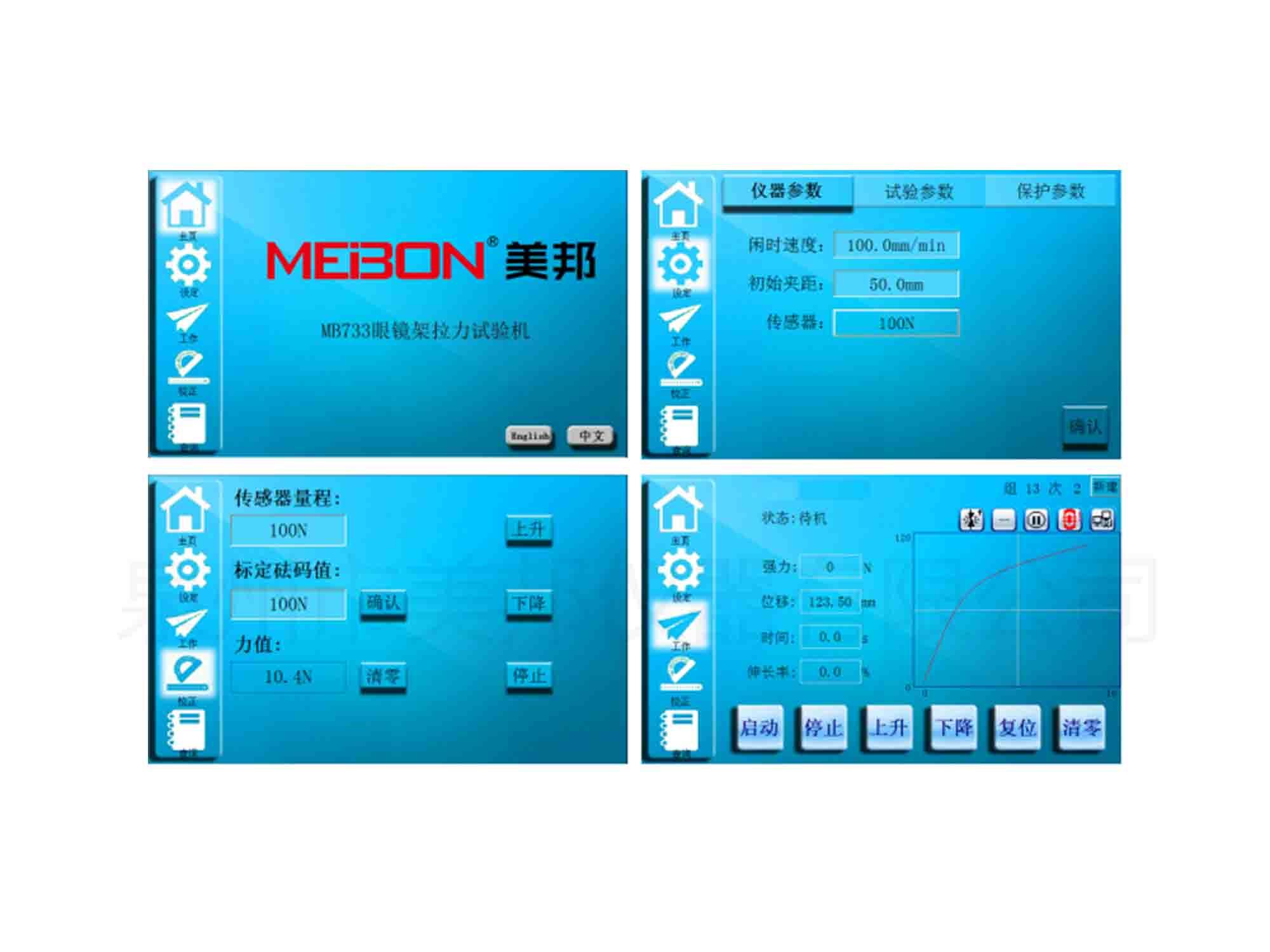 5、采用多種保護(hù)措施:動(dòng)滑塊上、下限位保護(hù);傳感器超負(fù)荷保護(hù);過流、過壓等保護(hù)。并對(duì)主要部件進(jìn)行時(shí)時(shí)監(jiān)測(cè)和顯示故障信息。因此儀器使用更加安全可靠。