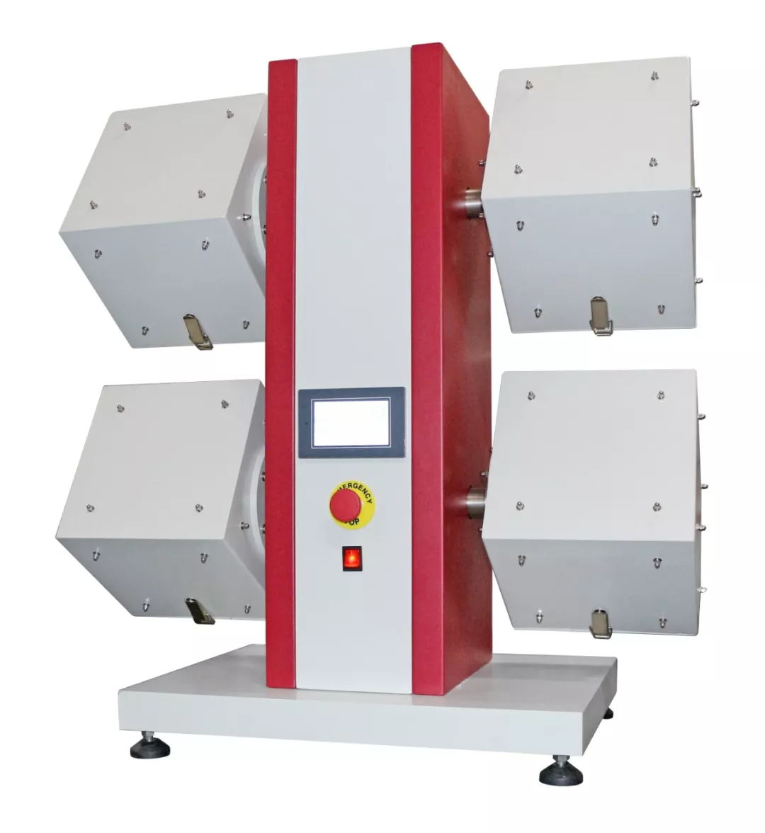 測試原理:安裝在聚氨酯管上的試樣,在具有恒定轉(zhuǎn)速、襯有軟木的木箱內(nèi)任意翻轉(zhuǎn)。經(jīng)過規(guī)定的翻轉(zhuǎn)次數(shù)后,對起毛和(或)起球性能進(jìn)行視覺描述評(píng)定。一般粗紡織物翻轉(zhuǎn)7200轉(zhuǎn),精紡織物翻轉(zhuǎn)14400轉(zhuǎn)。