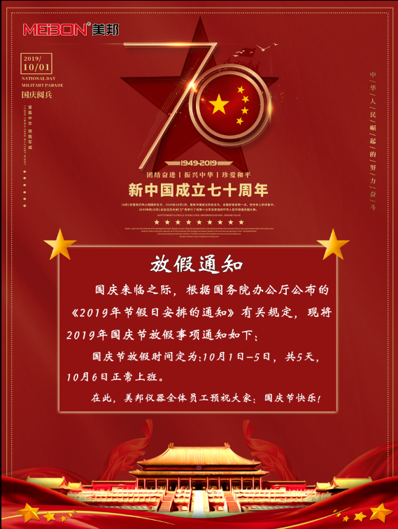 美邦儀器2019年“國慶節(jié)”放假通知