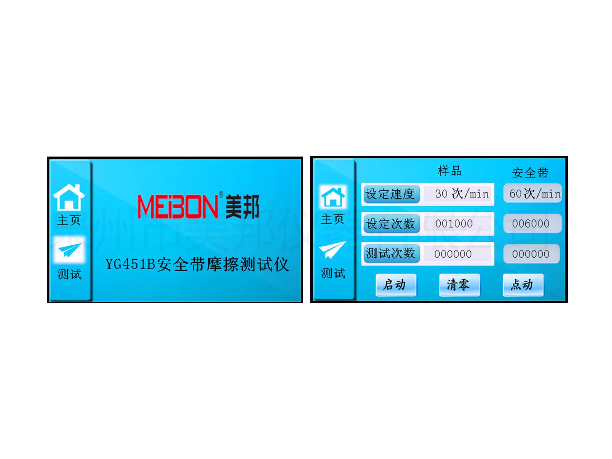 3、雙電機控制,客戶按試驗要求自由分別設(shè)定速度樣品和安全帶的轉(zhuǎn)速。