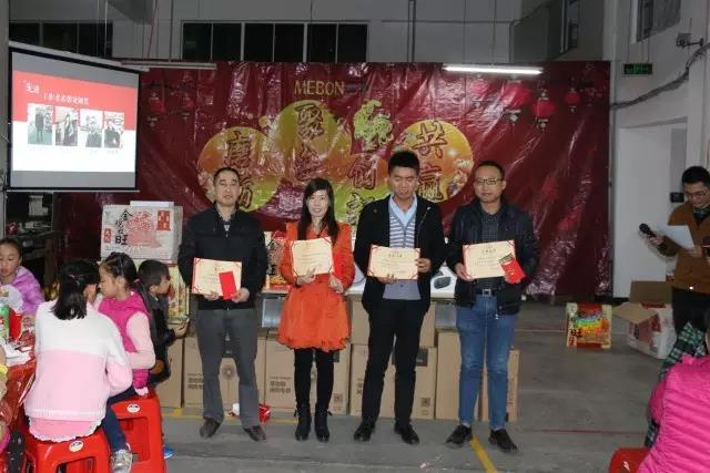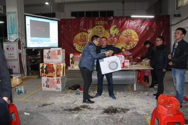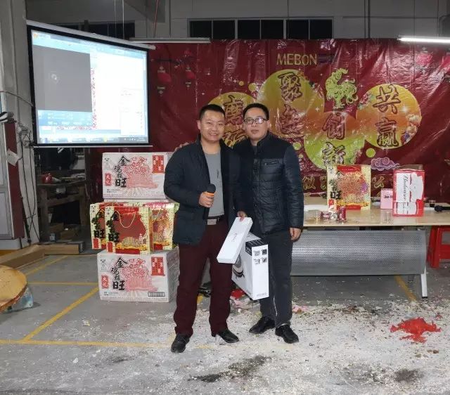 晚宴開席后,陸陸續(xù)續(xù)的開始了小孩子砸金蛋以及抽取公司員工的一、二、三等獎,一等獎是價值3499元的小米筆記本電腦一臺,二等獎是價值699元的小米空氣凈化器三臺,三等獎是199元的暴風VR眼鏡6副。一等獎獲獎者是技術部的劉尾!二等獎分別由銷售部的夏延豐、閆建坤和電子車間的盧真根獲得;三等獎由連小菊、蔡娜娜、陳梅玲、陳紅毛、林鳳鍛、徐炳林獲得,其余上臺者皆有價值60元的乒乓球拍一只。