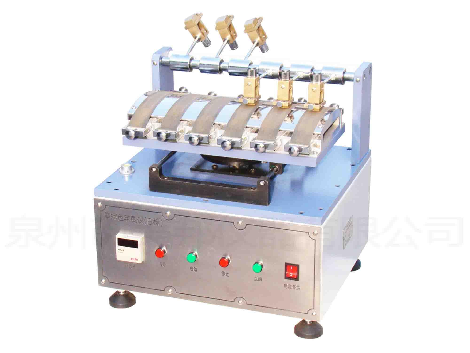 Used for the evaluation and determination of color fastness to rubbing for textile fibers. The surface of the friction head on a dry or wet white cotton cloth, after a  certain load and the number of times, and the friction color test, the color fastness to rubbing is evaluated by grey scale, it can also be used as an organic solven friction test.